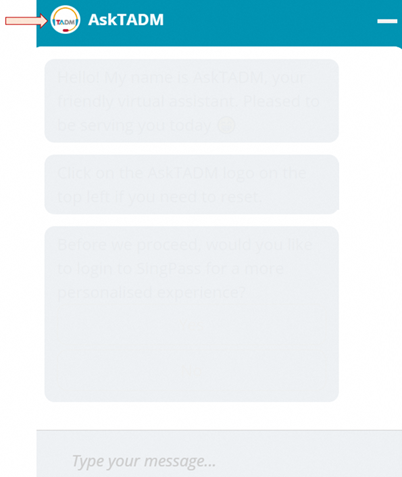 Click on the “Ask TADM" logo on the top left of the chatbot window if you need to reset.