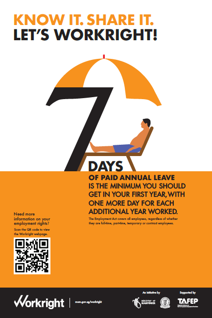 The Workright initiative helps employees and employers understand their rights and obligations respectively in accordance with the Employment Act and CPF Act. In addition, if you are a Singapore Citizen or Singapore Permanent Resident, you are entitled to Central Provident Fund (CPF) contributions.