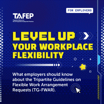 We have appointed Consulting Group – Asia Insight Pte Ltd to conduct an online survey for our ‘Flexible Work Arrangements’ campaign to understand Singaporeans and Singapore PR’s knowledge and perception of FWAs and the Tripartite Guidelines on Flexible Work Arrangement Requests (TG-FWAR) principles.