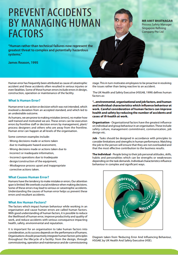 - In the “Guidelines on managing human factors in major hazard installations”, it provides practical guidance for major hazard installations to identify potential human failures and manage human performance which are essential to improving human reliability.