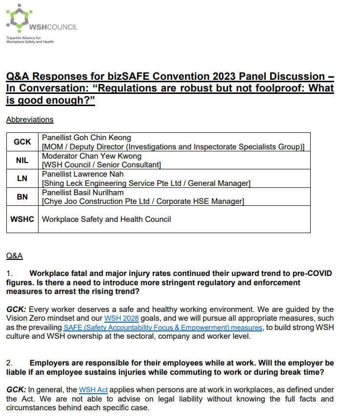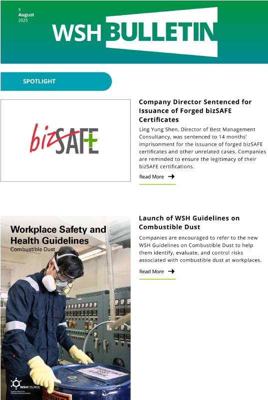 Though bizSAFE is structured as a 5-step programme, your company may apply for a level directly as long as it meets the level's requirements. We encourage companies to progress to bizSAFE Level 3 and above, which recognises that your company has conducted risk assessments for your workplace, in compliance with the requirements in the WSH (Risk Management) Regulations.