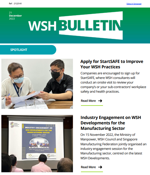 - Understand your legal obligations under the Workplace Safety and Health (WSH) Act;