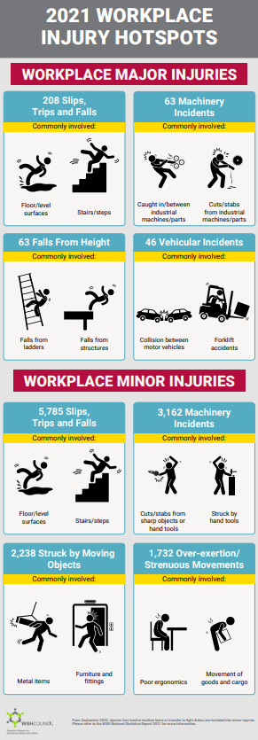 2021 Workplace Injury Hotspots WSH Infographics poster