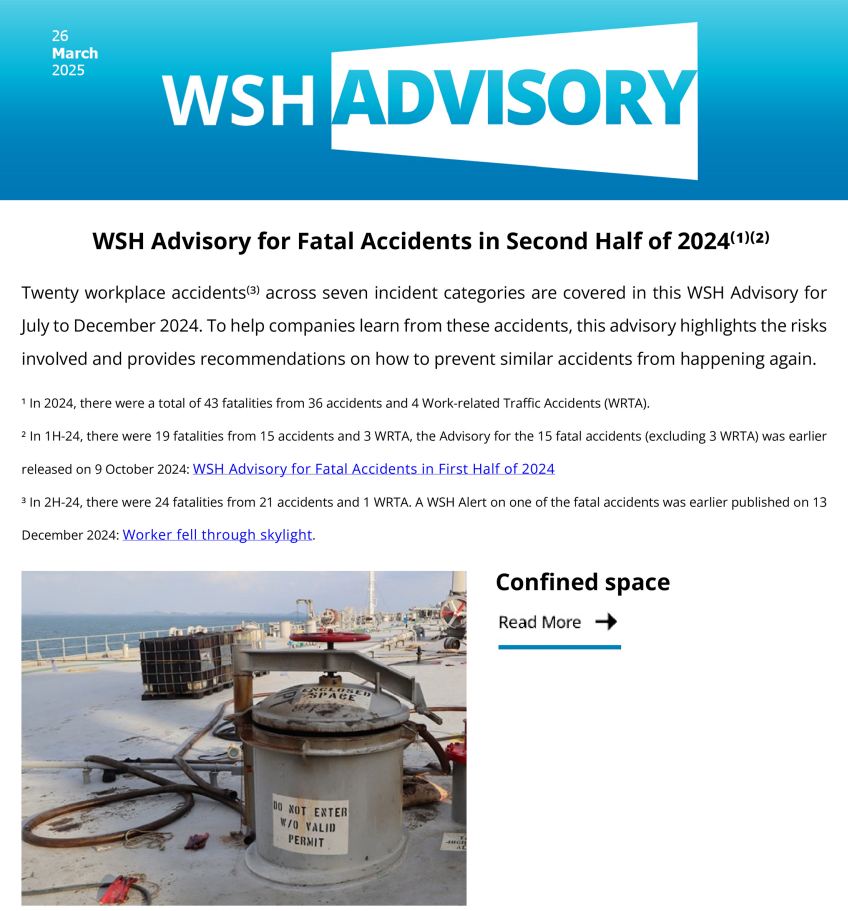 WSH Advisory for Fatal Accidents in Second Half of 2024