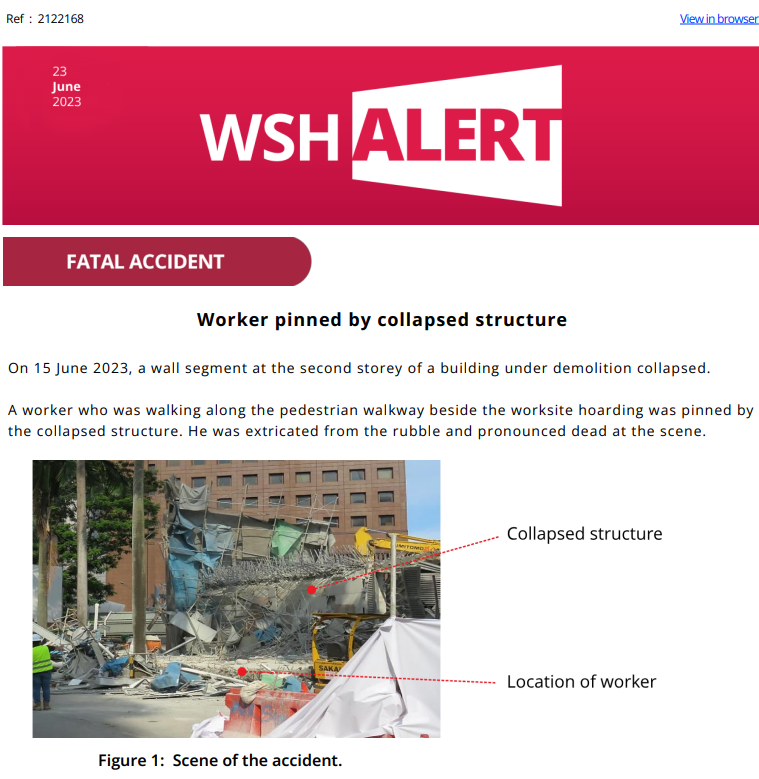 WSH Alert 23 June 2023 Worker pinned by collapsed structure