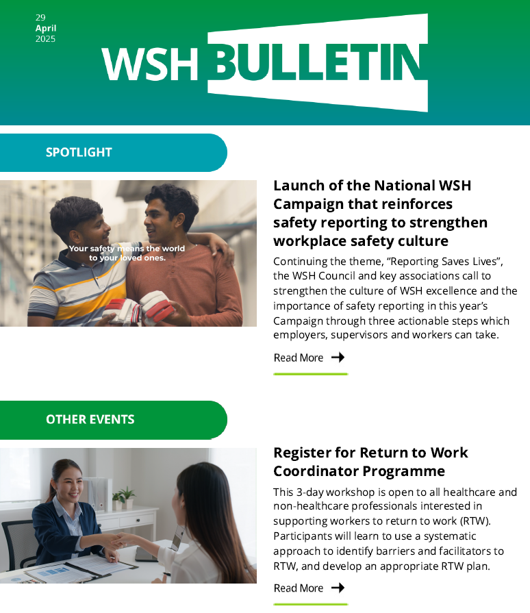 WSH Bulletin 29 April 2025 Launch of the National WSH Campaign that Reinforces Safety Reporting