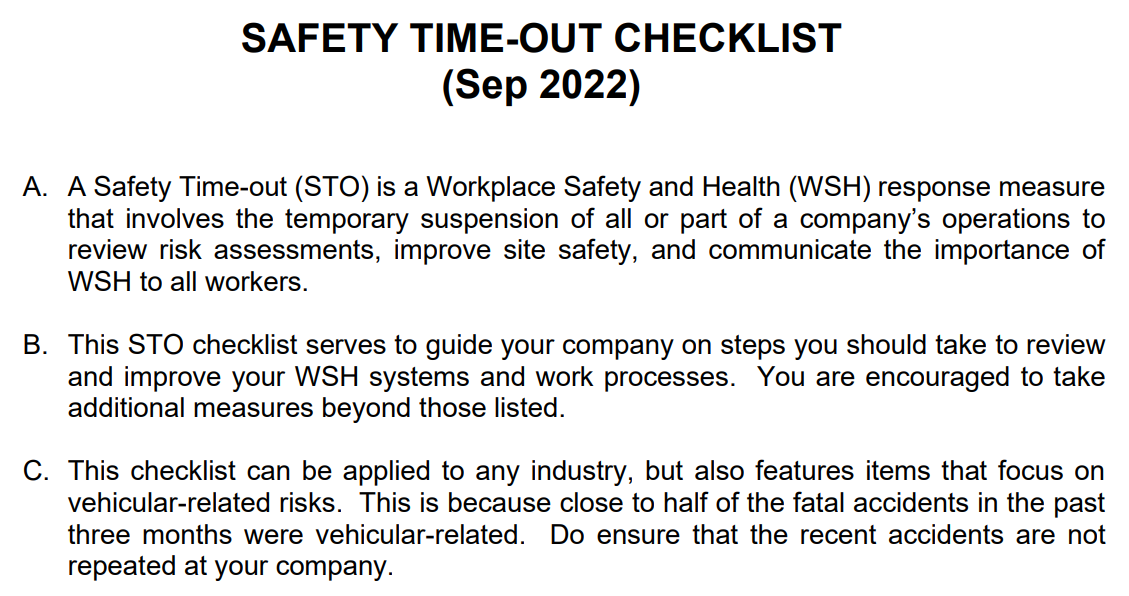 Safety Time Out checklist