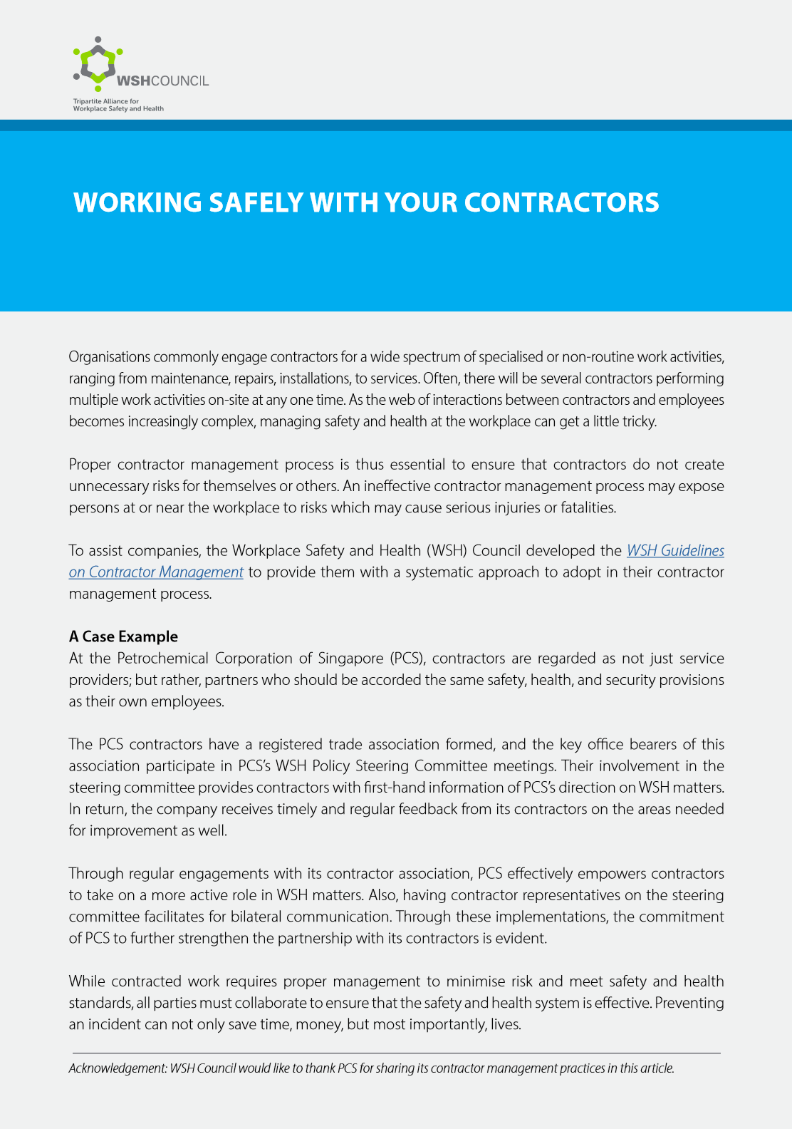Learn how to manage contractors effectively to minimise risk and meet WSH standards.