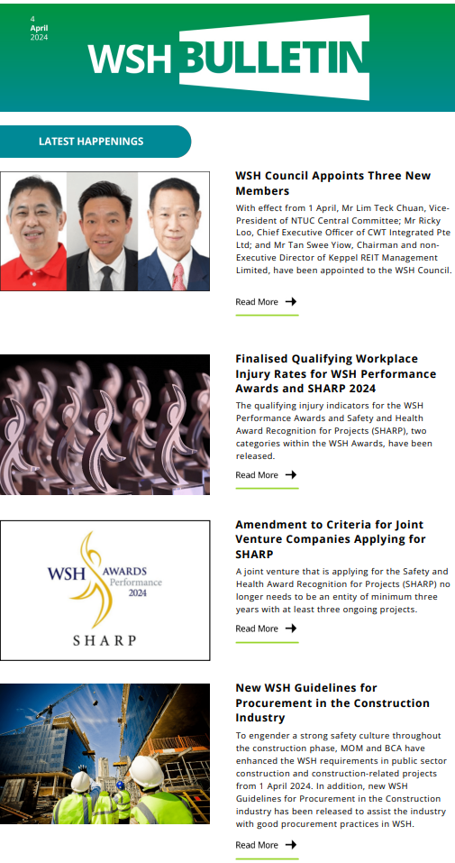 Developers, main contractors and sub-contractors are key stakeholders who can drive positive WSH outcomes through procurement.